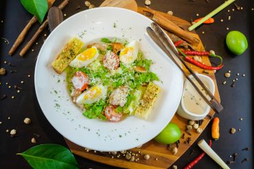 Iceberg lettuce, chicken breast, boiled egg, crouton, caesar dressing