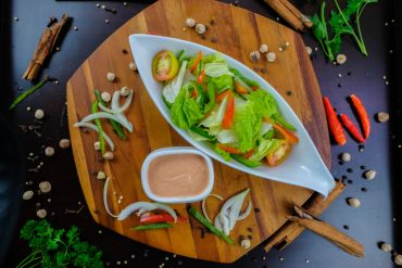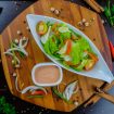 Iceberg lettuce, tomato, capsicum, carrot, with thousand islan dressing