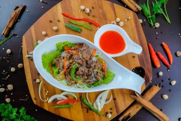 Glass noodle, sliced beef, mix vegetable with thai dressing sauce