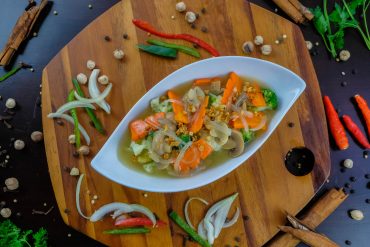 Deep fried oxtail with mixed vegetable soup and steamed rice