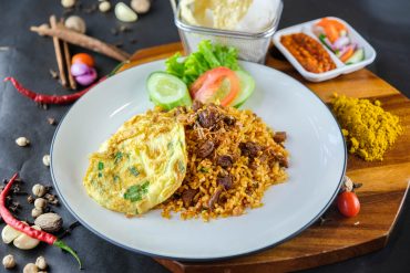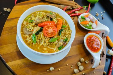 Diced beef, potato,leek, tomato, celery, emping, with coconut milk